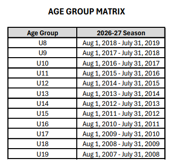 U13-U19 Tryouts - July 26-27, 2026